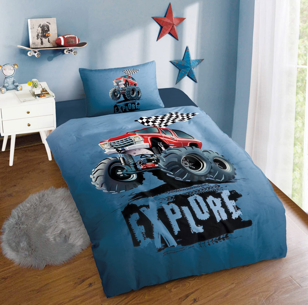 סט ילדים למיטת יחיד כולל 1 סדין 90/200 1 ציפית לכרית 50/70 ו1 ציפה לשמיכת יחיד 150/200. מיטה וחצי אותו הדבר חוץ מגודל הסדין שמשתנה ל120/200